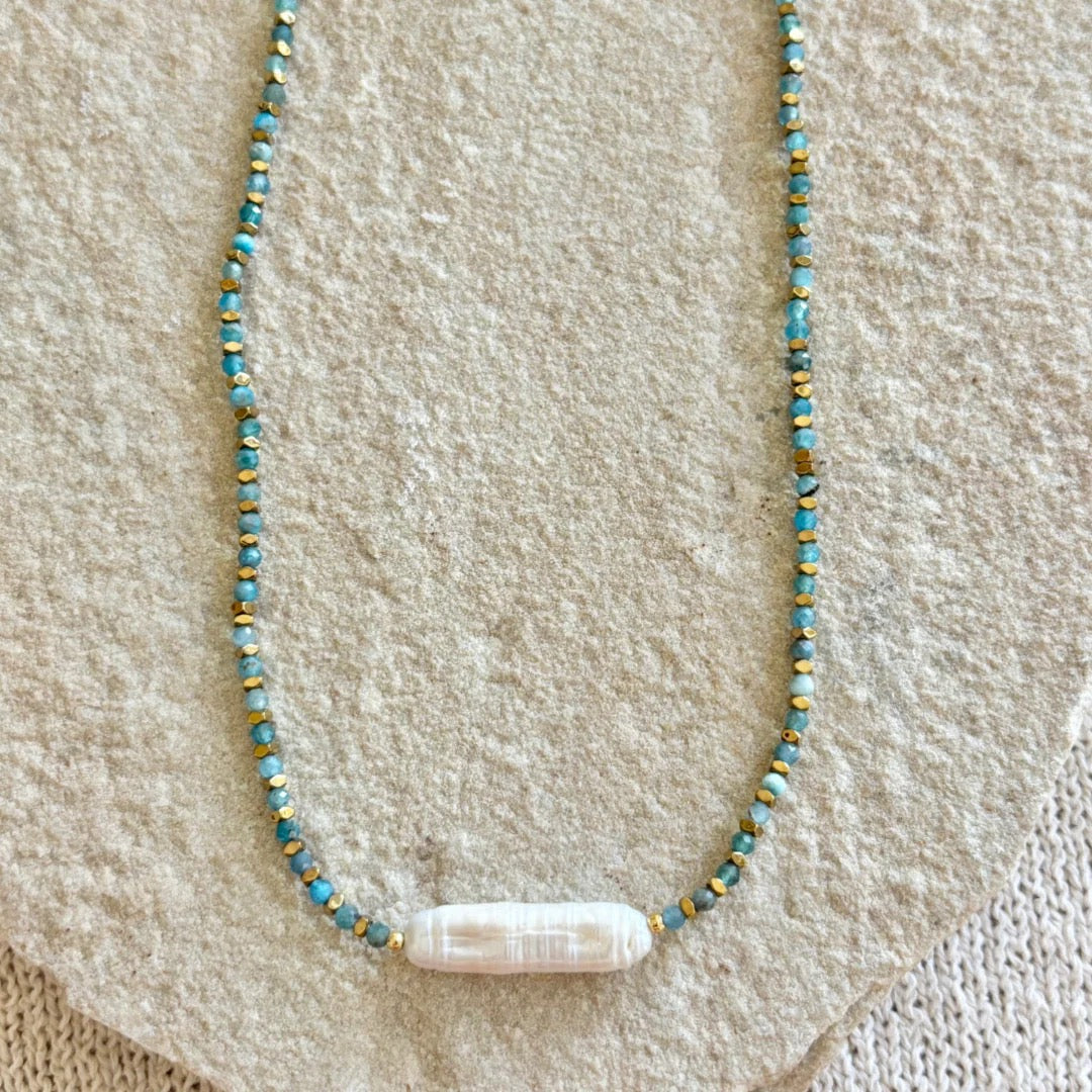 Amazonite freshwater pearl gold plated stainless steel necklace