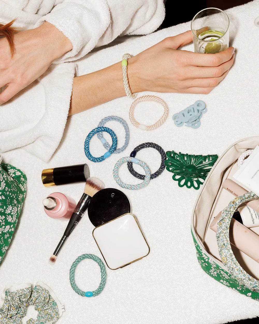 With a vibrant palette of over 700 colors, KKNEKKI lets you mix, match, and accessorize with ease. Each hair tie is finished with a bead crafted from recycled plastic.